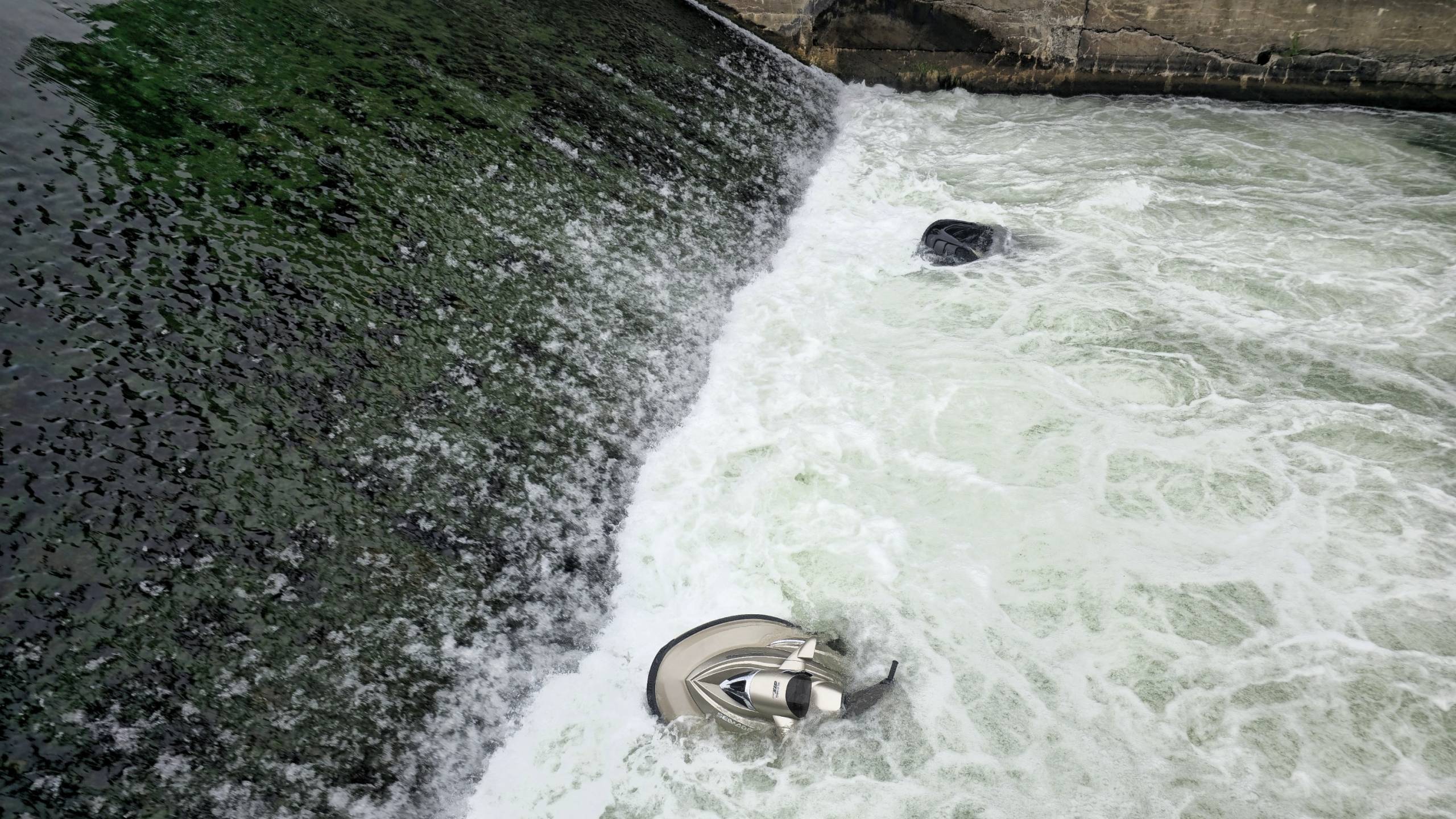 Les motomarines sont restées prises dans le courant. (Photo : Le Reflet – Erick Rivest)